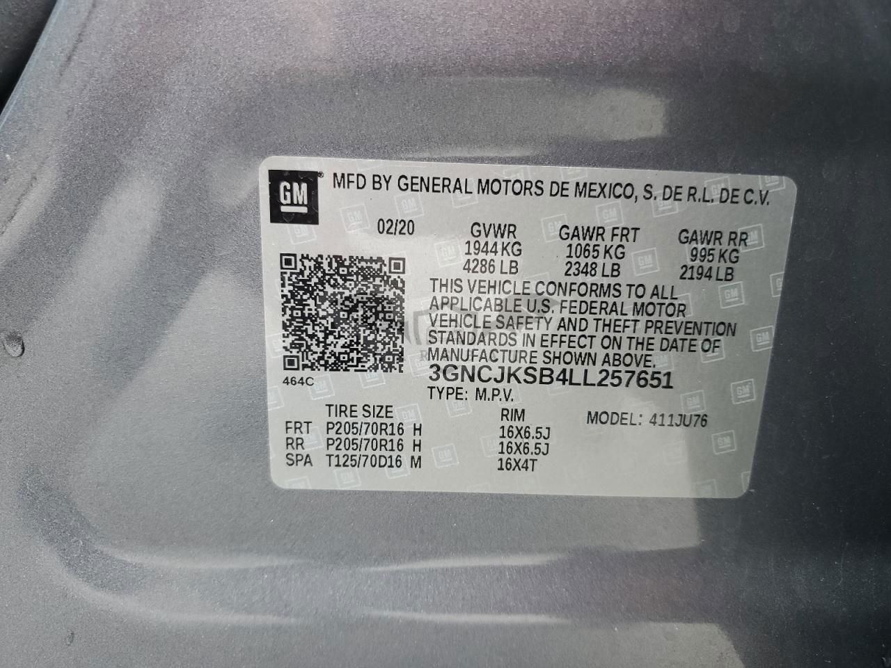 • VIN: 3GNCJKSB4LL257651