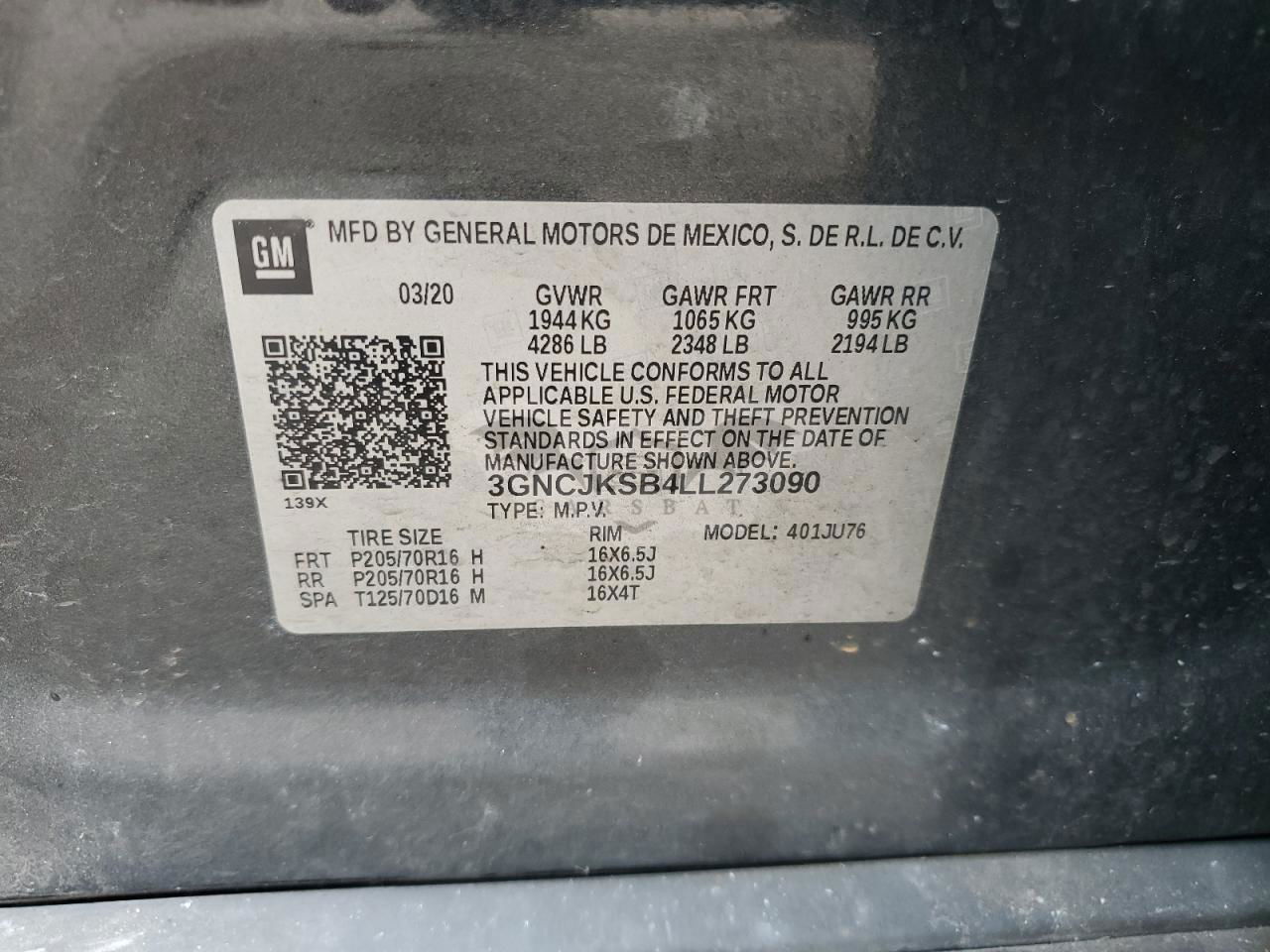 • VIN: 3GNCJKSB4LL273090
