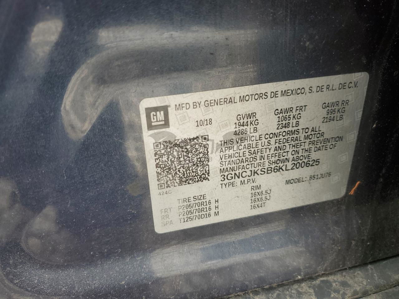 • VIN: 3GNCJKSB6KL200625