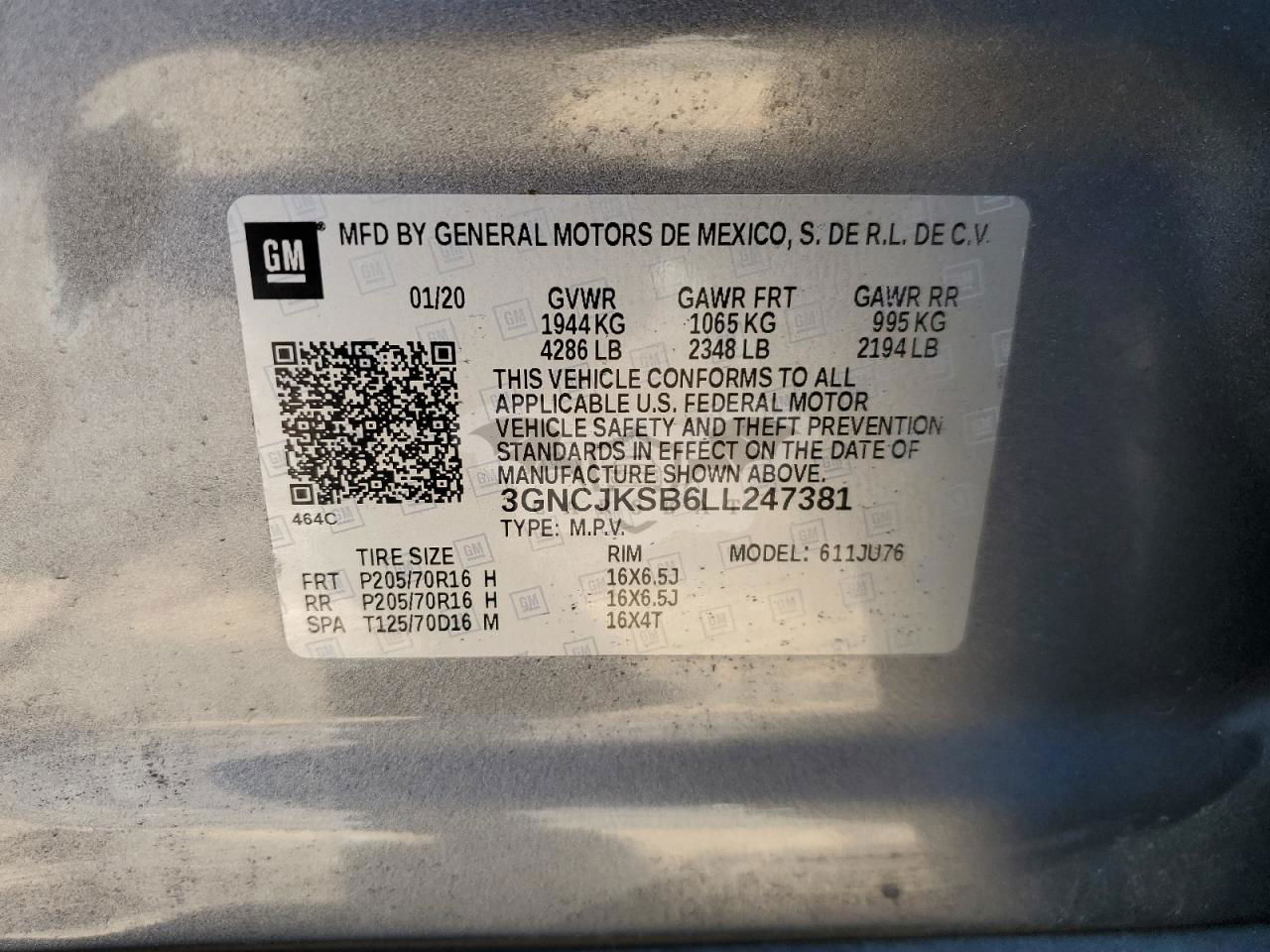 • VIN: 3GNCJKSB6LL247381