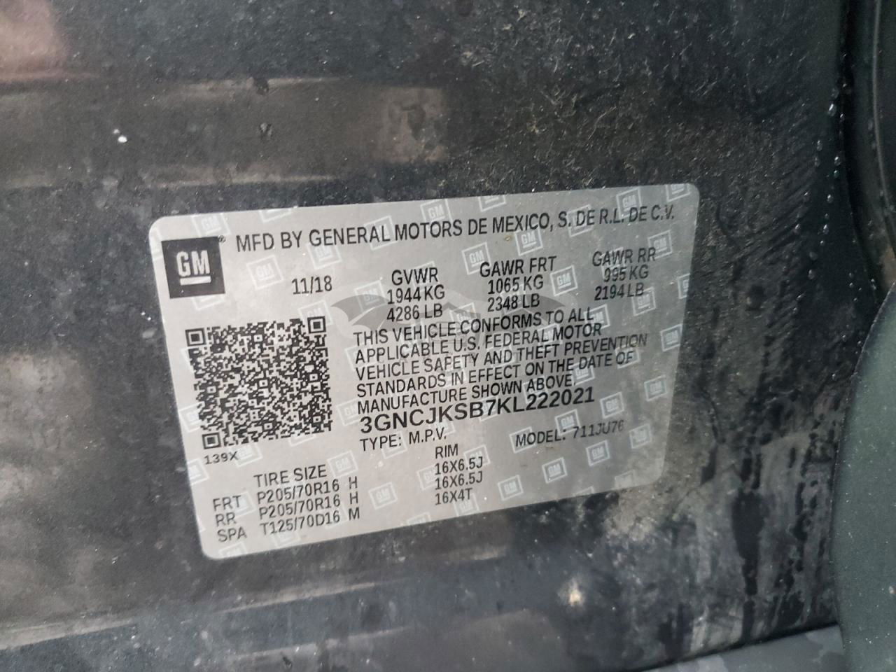• VIN: 3GNCJKSB7KL222021