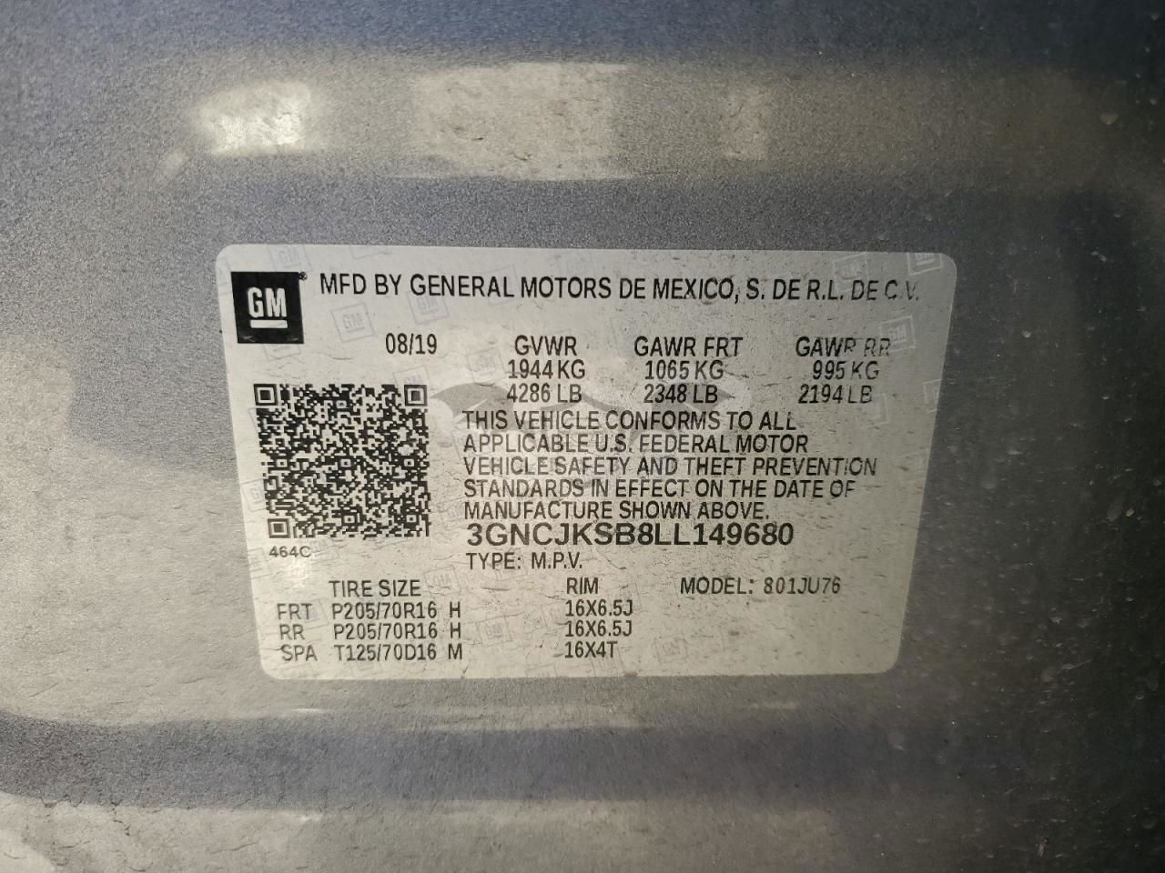 • VIN: 3GNCJKSB8LL149680