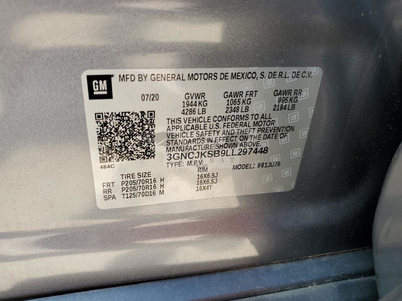 • VIN: 3GNCJKSB9LL297448