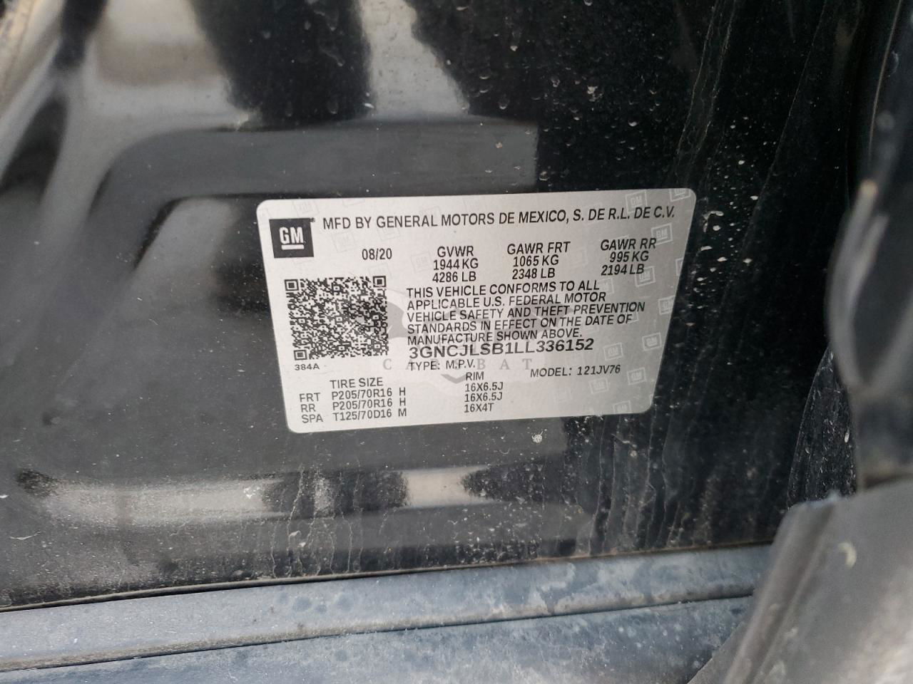 • VIN: 3GNCJLSB1LL336152