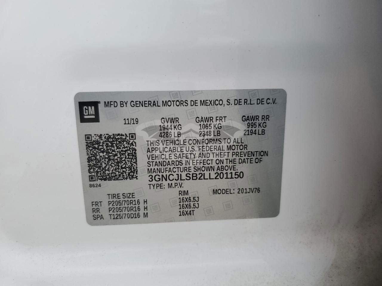 • VIN: 3GNCJLSB2LL201150