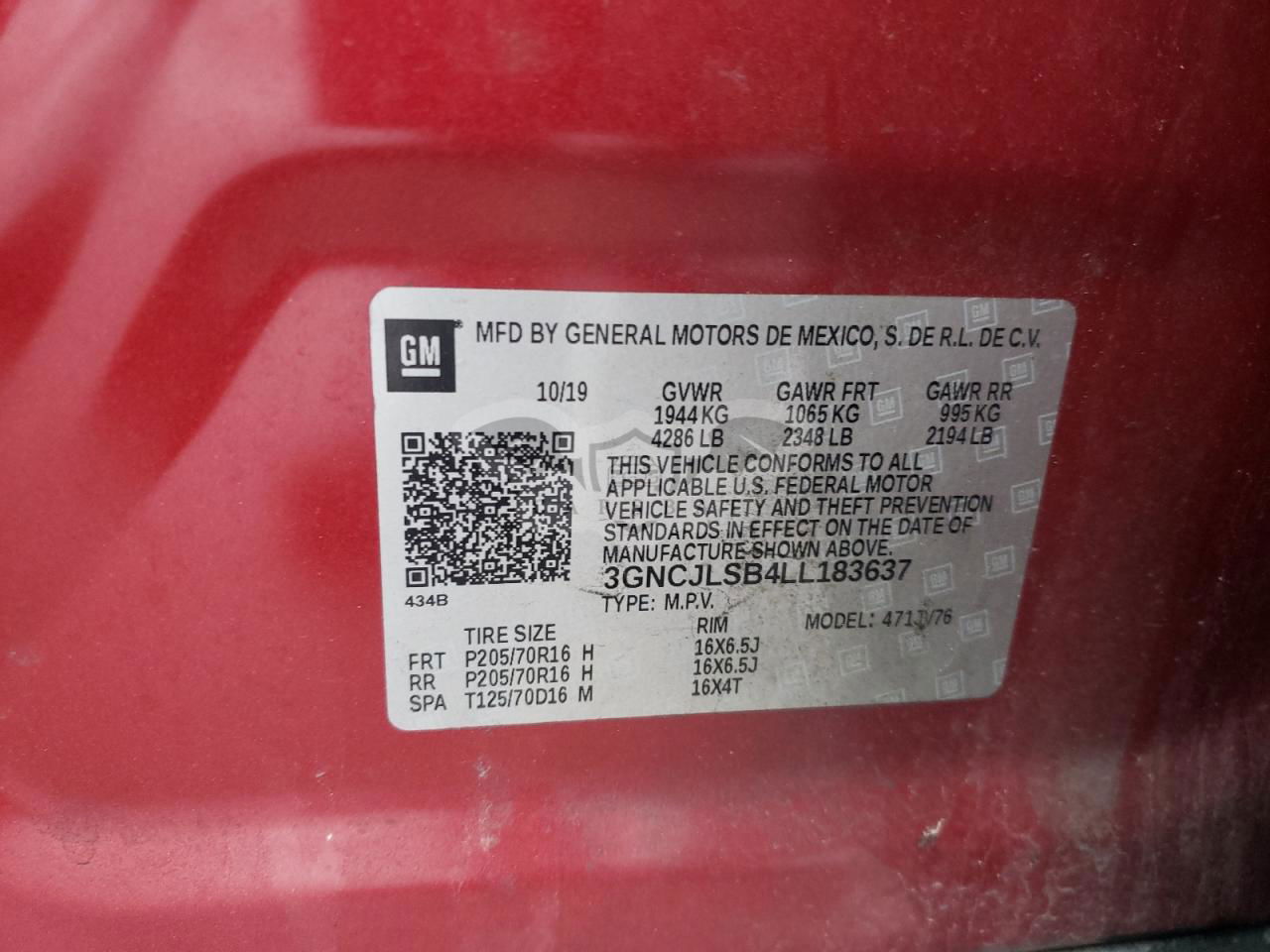 • VIN: 3GNCJLSB4LL183637