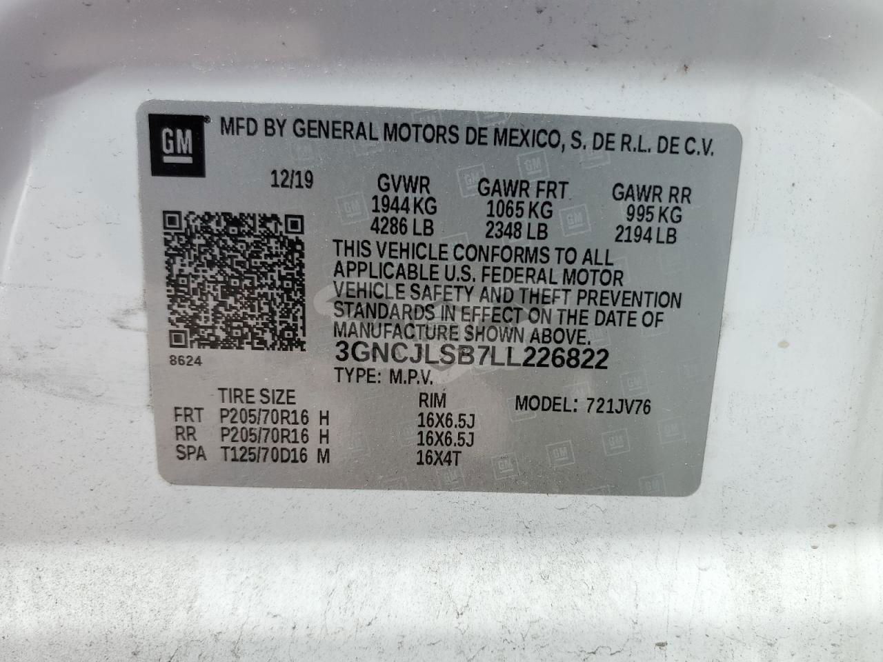 • VIN: 3GNCJLSB7LL226822