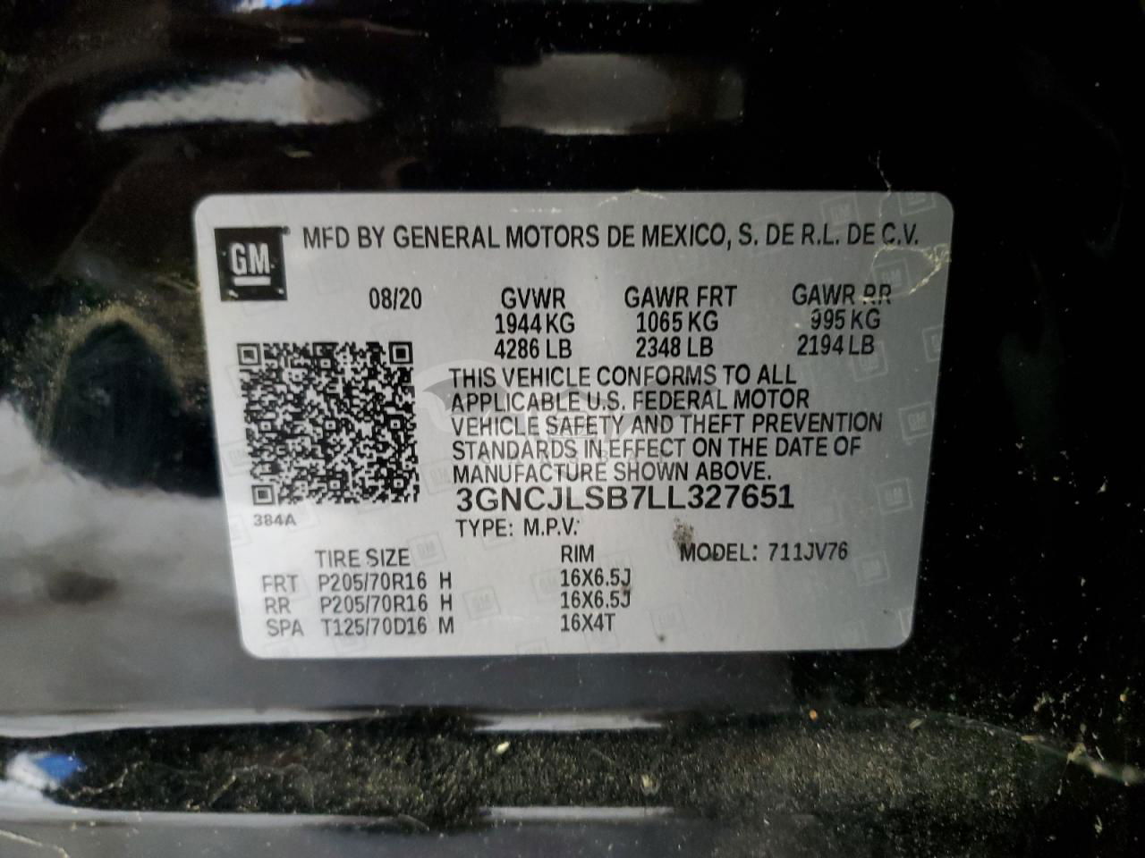 • VIN: 3GNCJLSB7LL327651