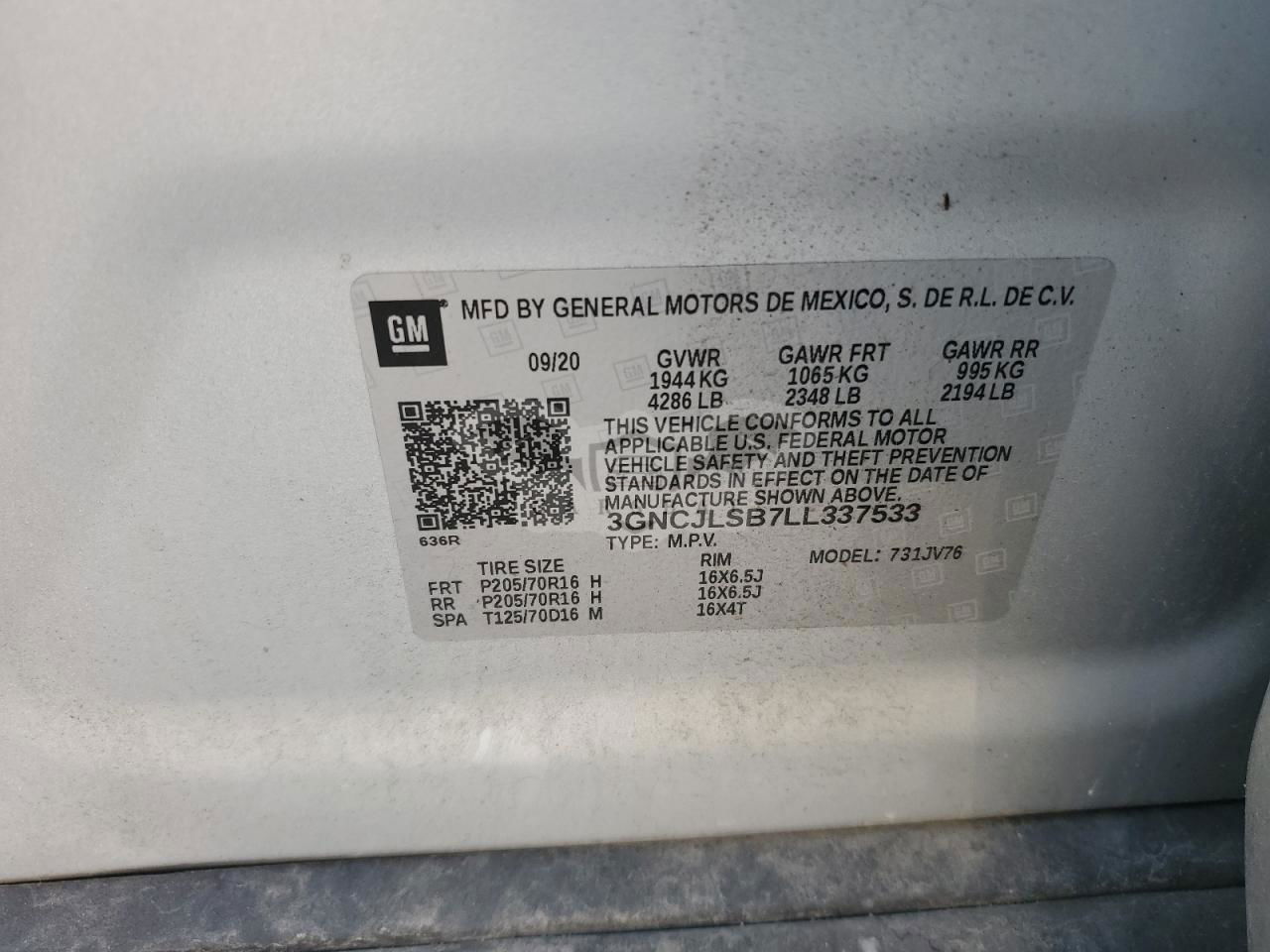 • VIN: 3GNCJLSB7LL337533