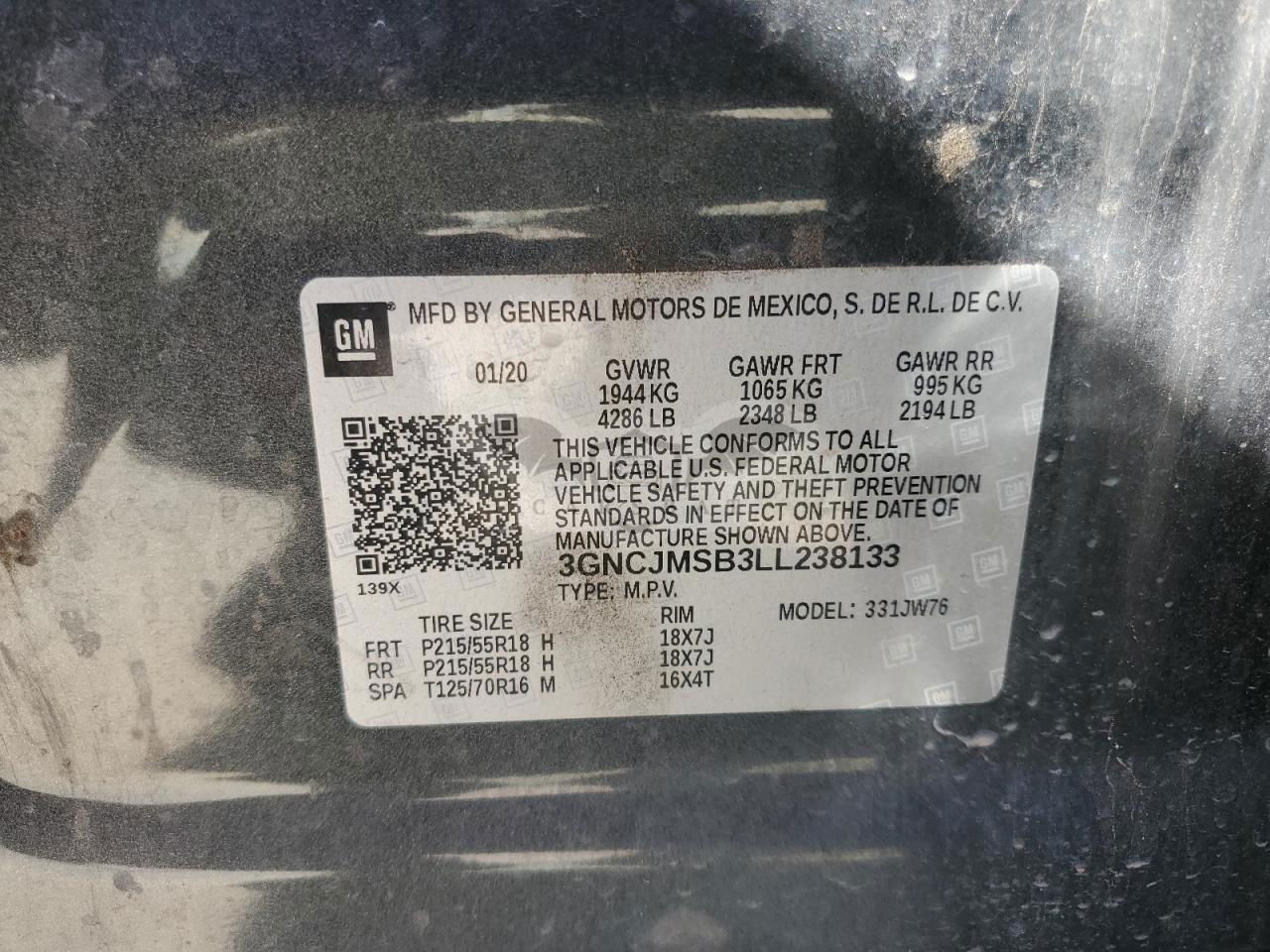 • VIN: 3GNCJMSB3LL238133