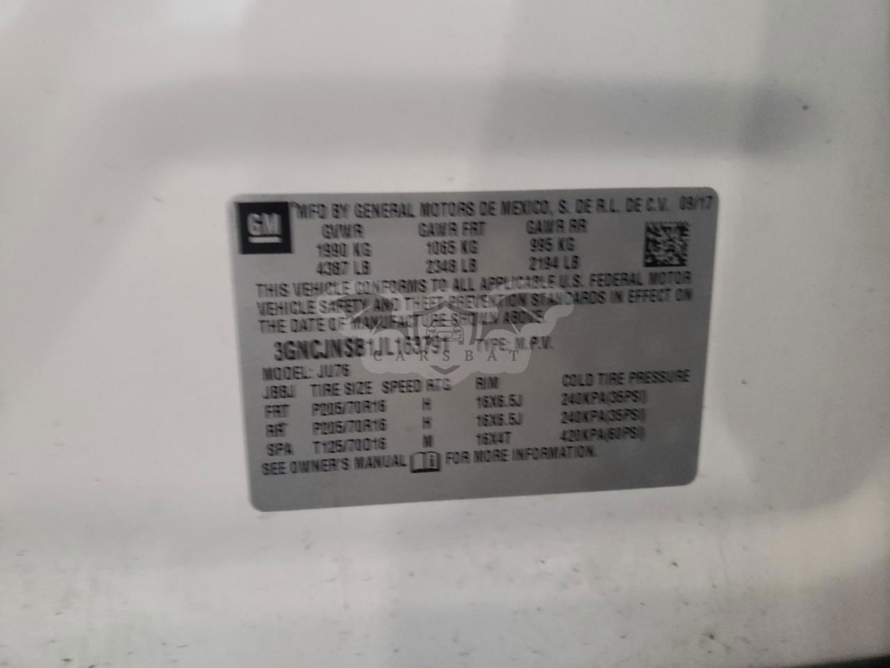 • VIN: 3GNCJNSB1JL163791