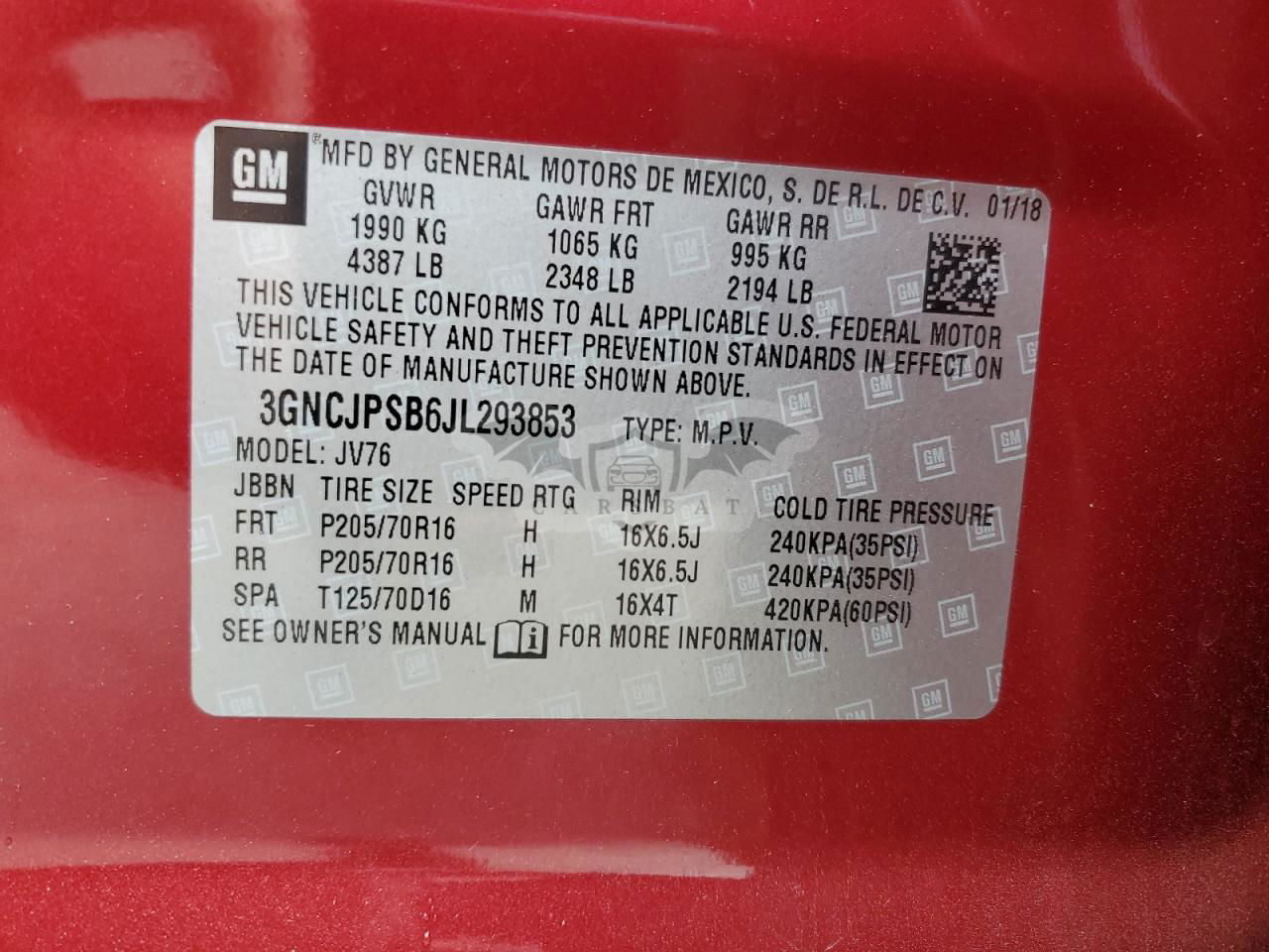 • VIN: 3GNCJPSB6JL293853