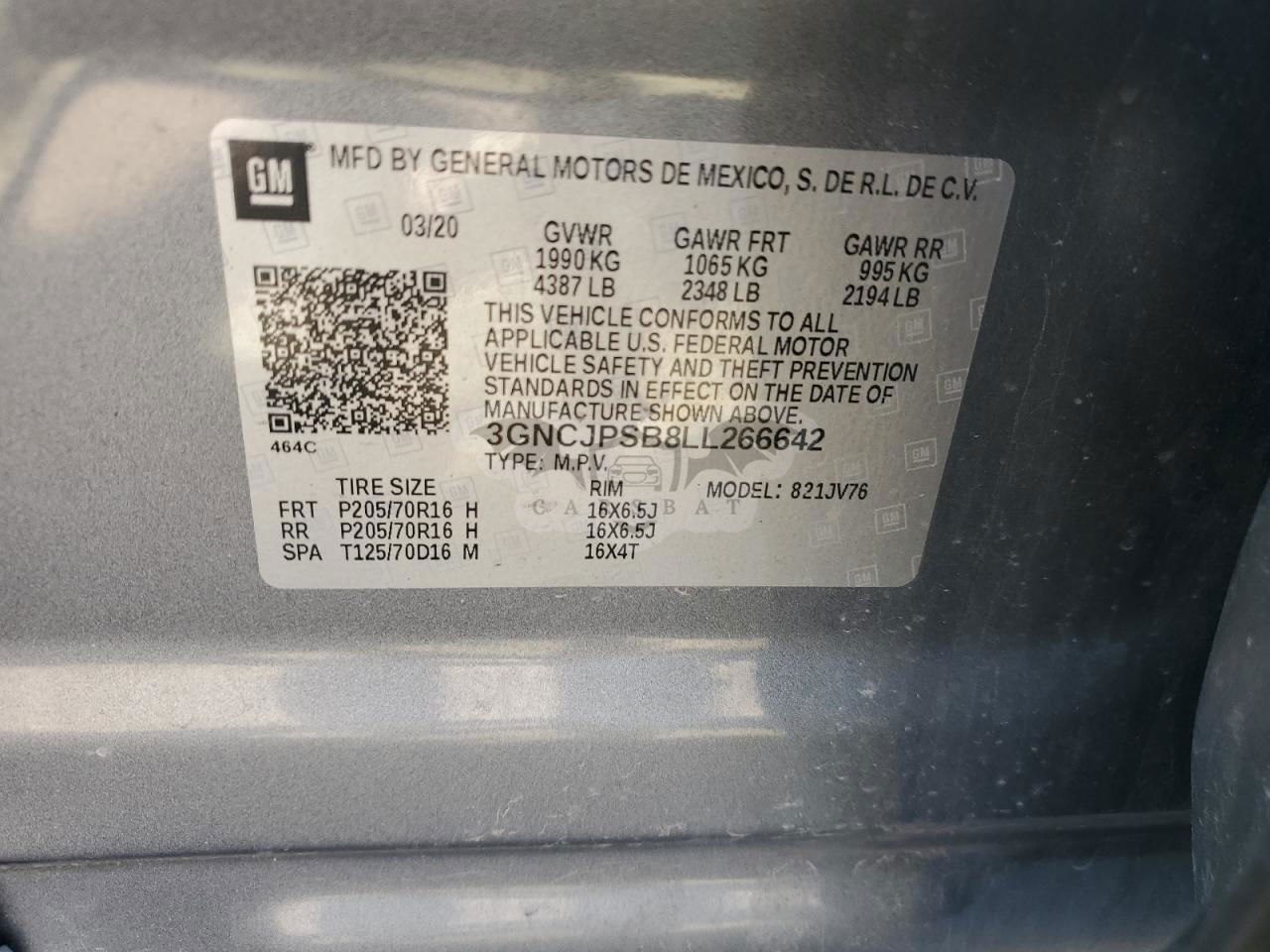 • VIN: 3GNCJPSB8LL266642
