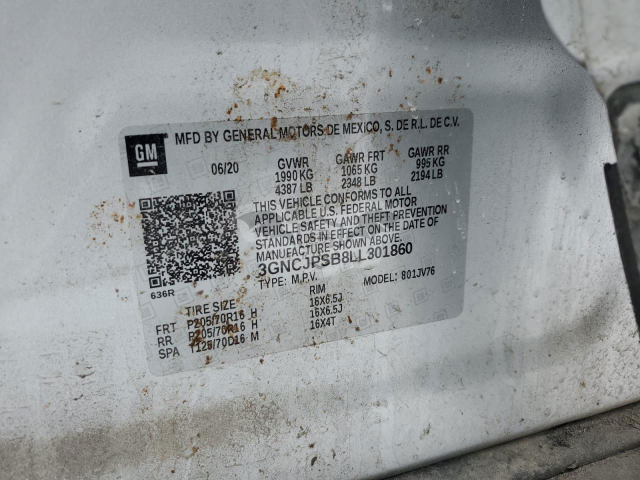 • VIN: 3GNCJPSB8LL301860