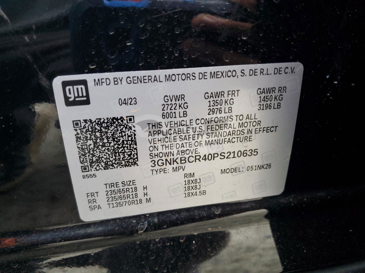 • VIN: 3GNKBCR40PS210635