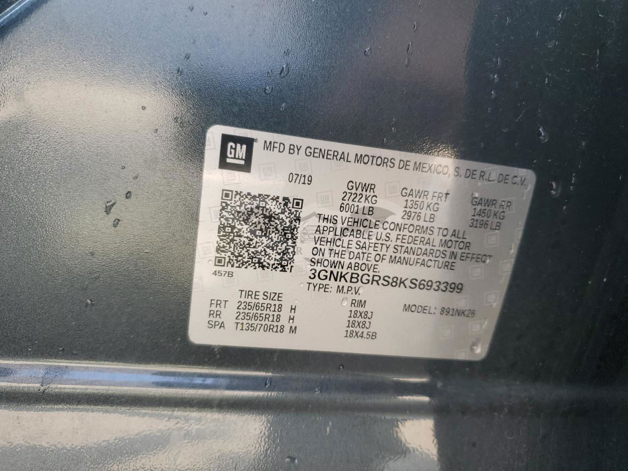• VIN: 3GNKBGRS8KS693399