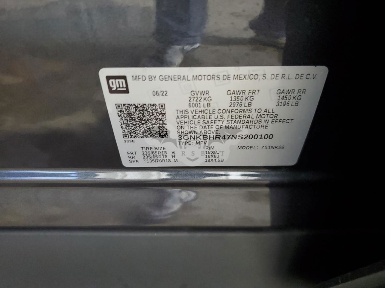 • VIN: 3GNKBHR47NS200100