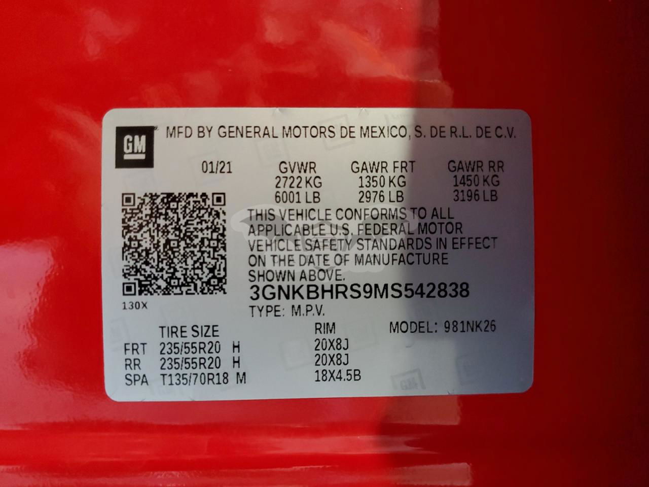 • VIN: 3GNKBHRS9MS542838