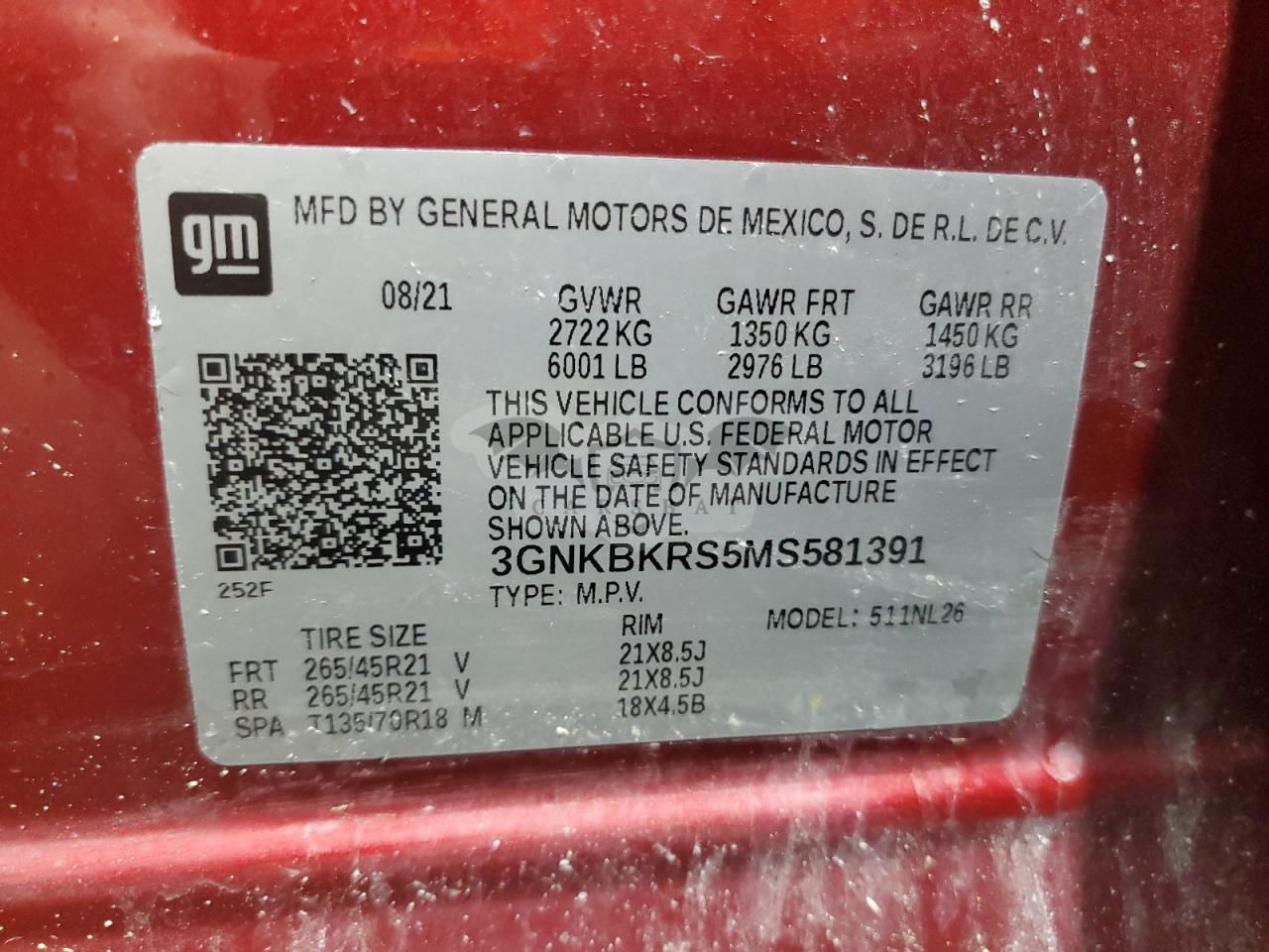 • VIN: 3GNKBKRS5MS581391