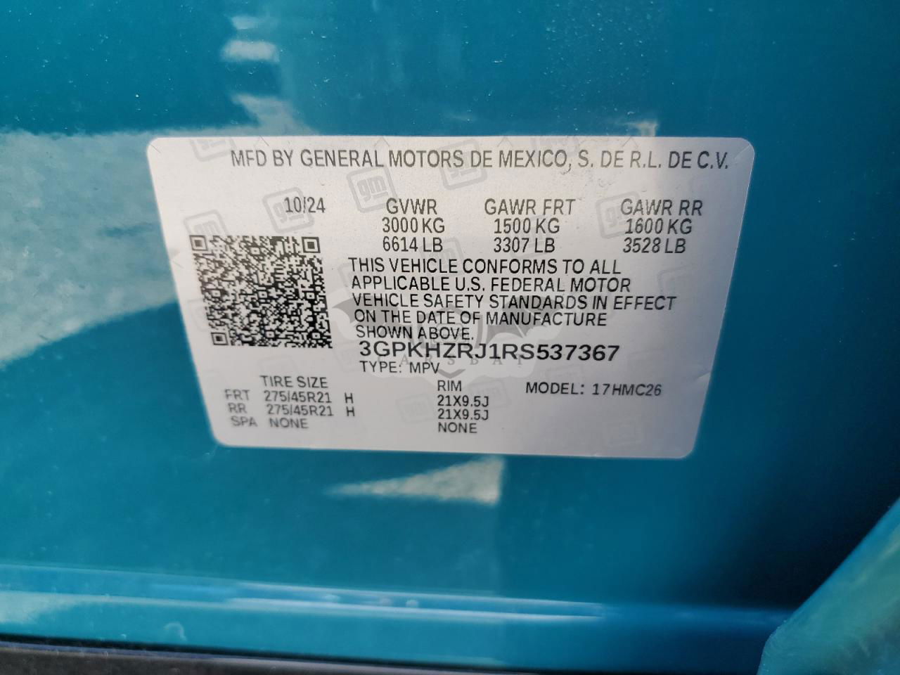 • VIN: 3GPKHZRJ1RS537367