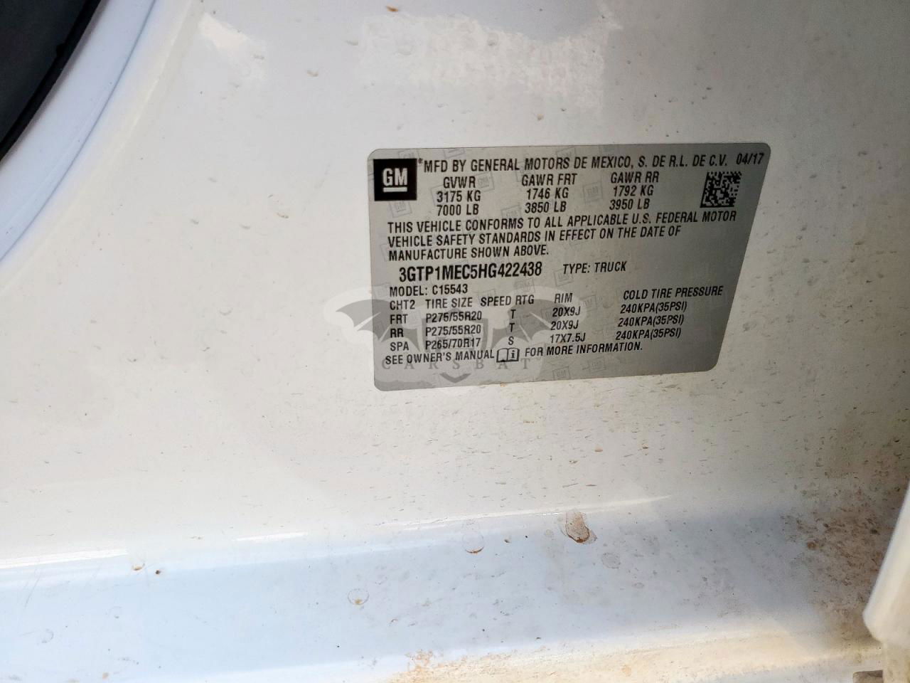 • VIN: 3GTP1MEC5HG422438