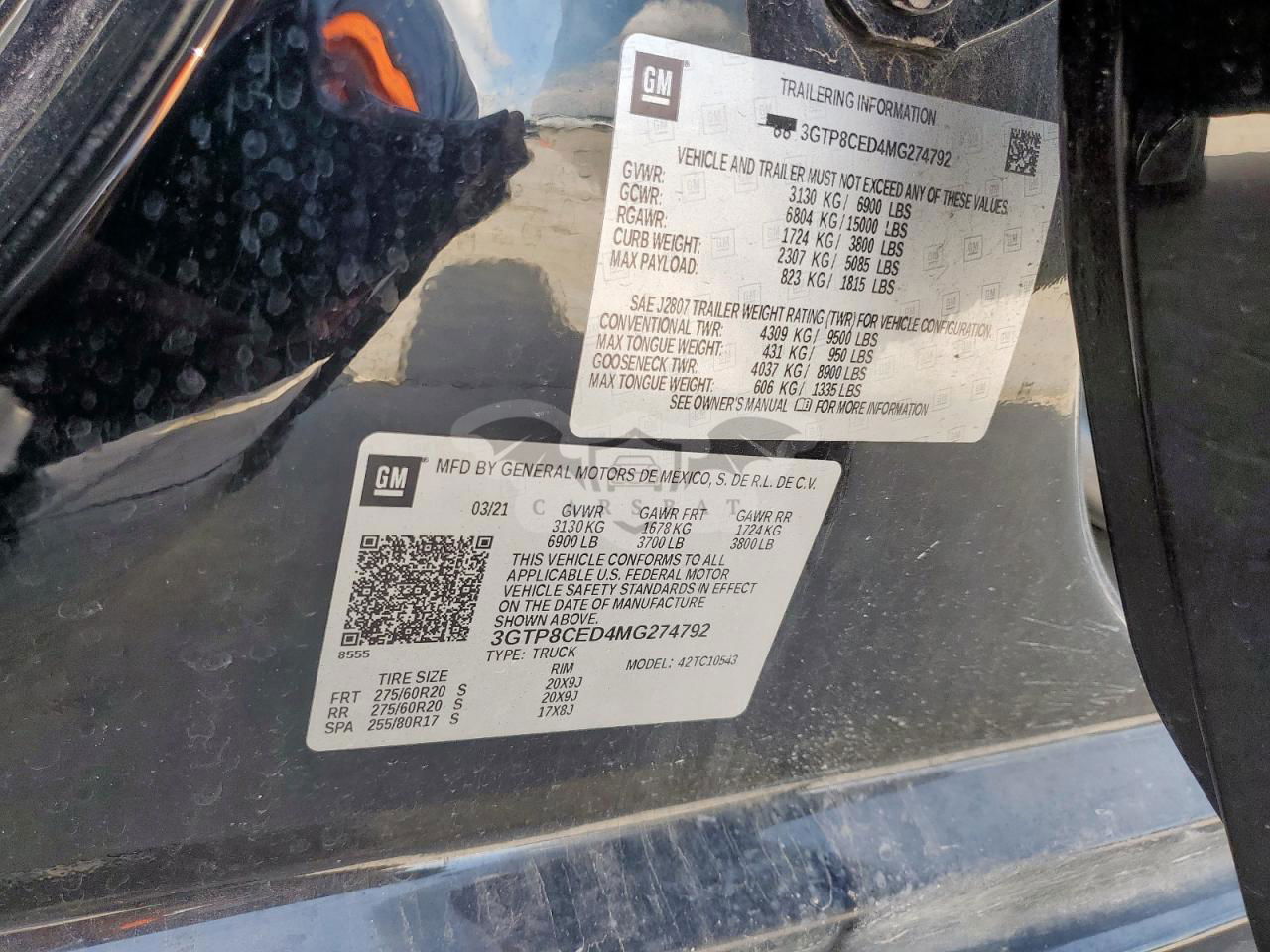 • VIN: 3GTP8CED4MG274792