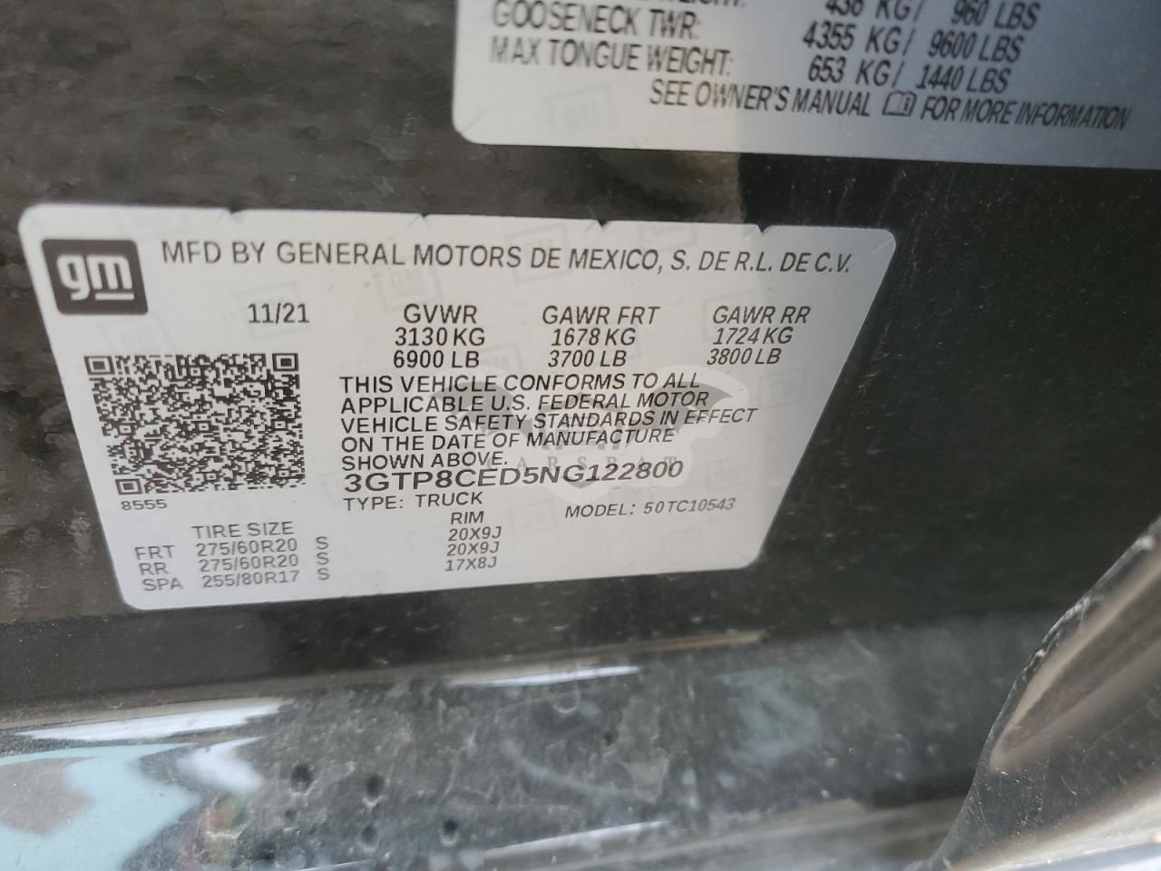 • VIN: 3GTP8CED5NG122800