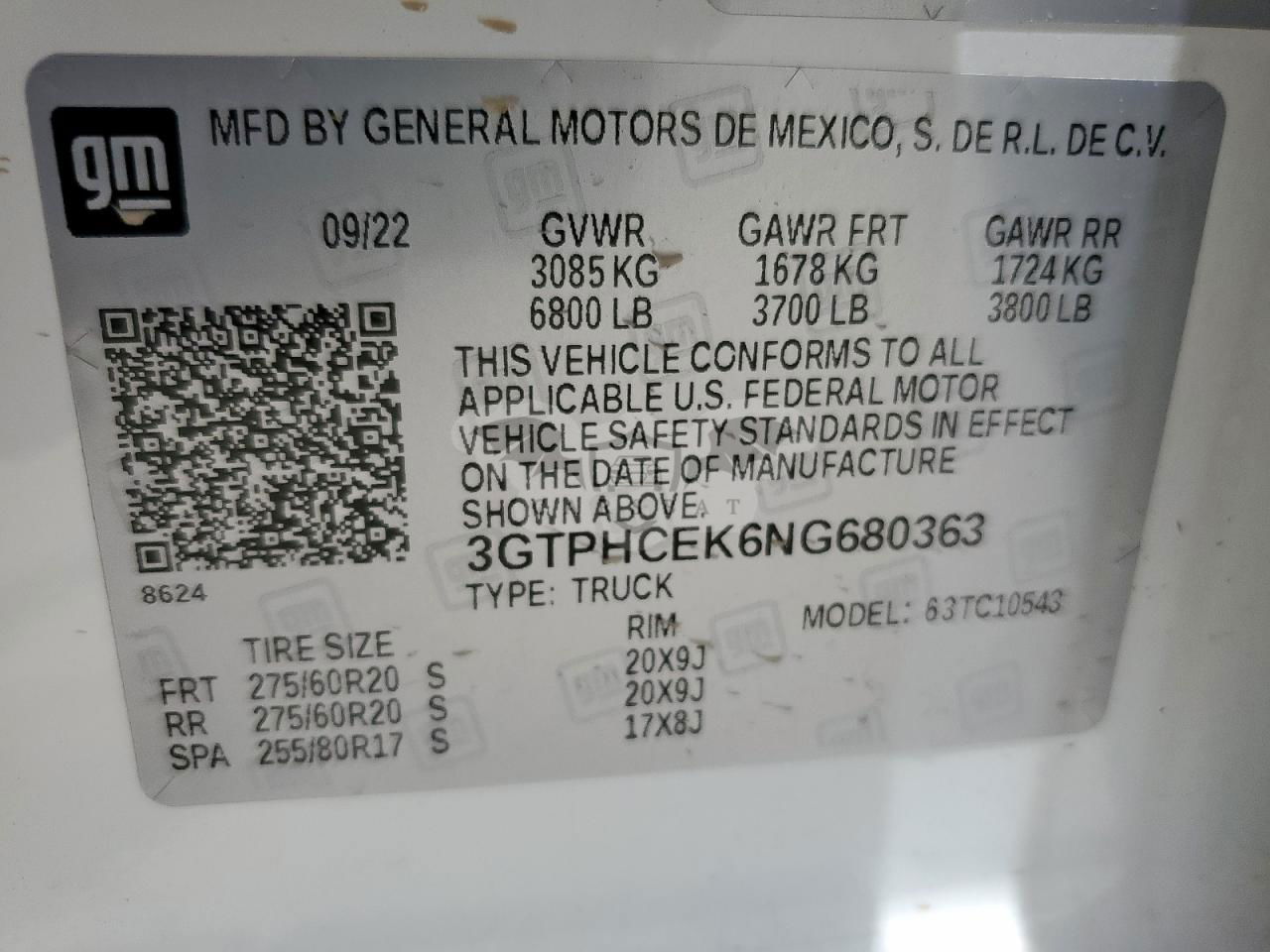 • VIN: 3GTPHCEK6NG680363