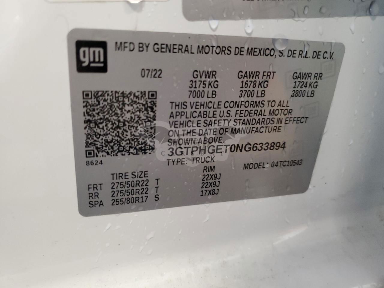• VIN: 3GTPHGET0NG633894