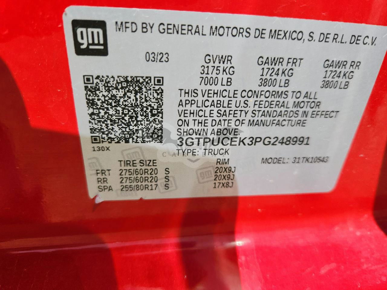 • VIN: 3GTPUCEK3PG248991