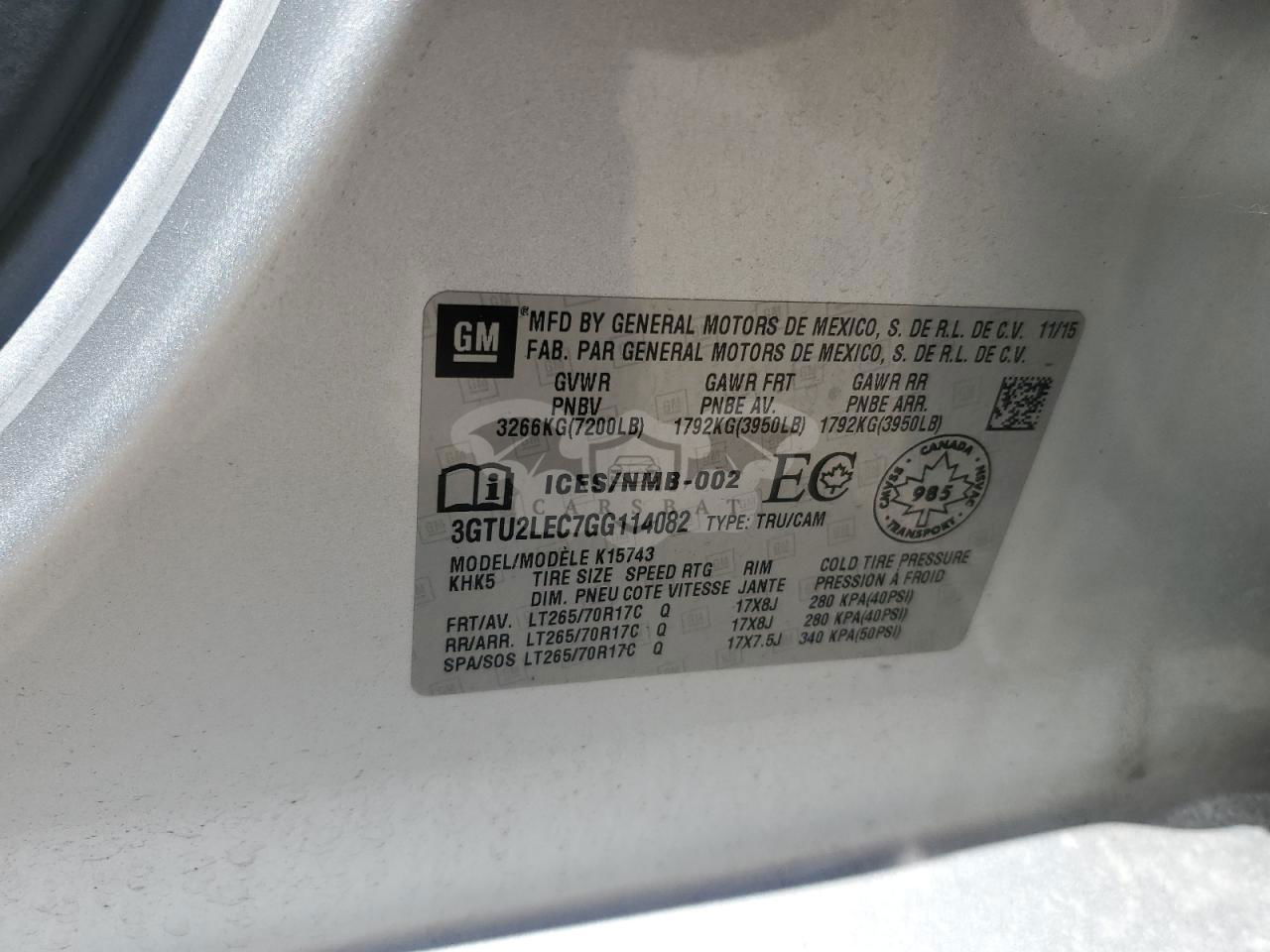 • VIN: 3GTU2LEC7GG114082