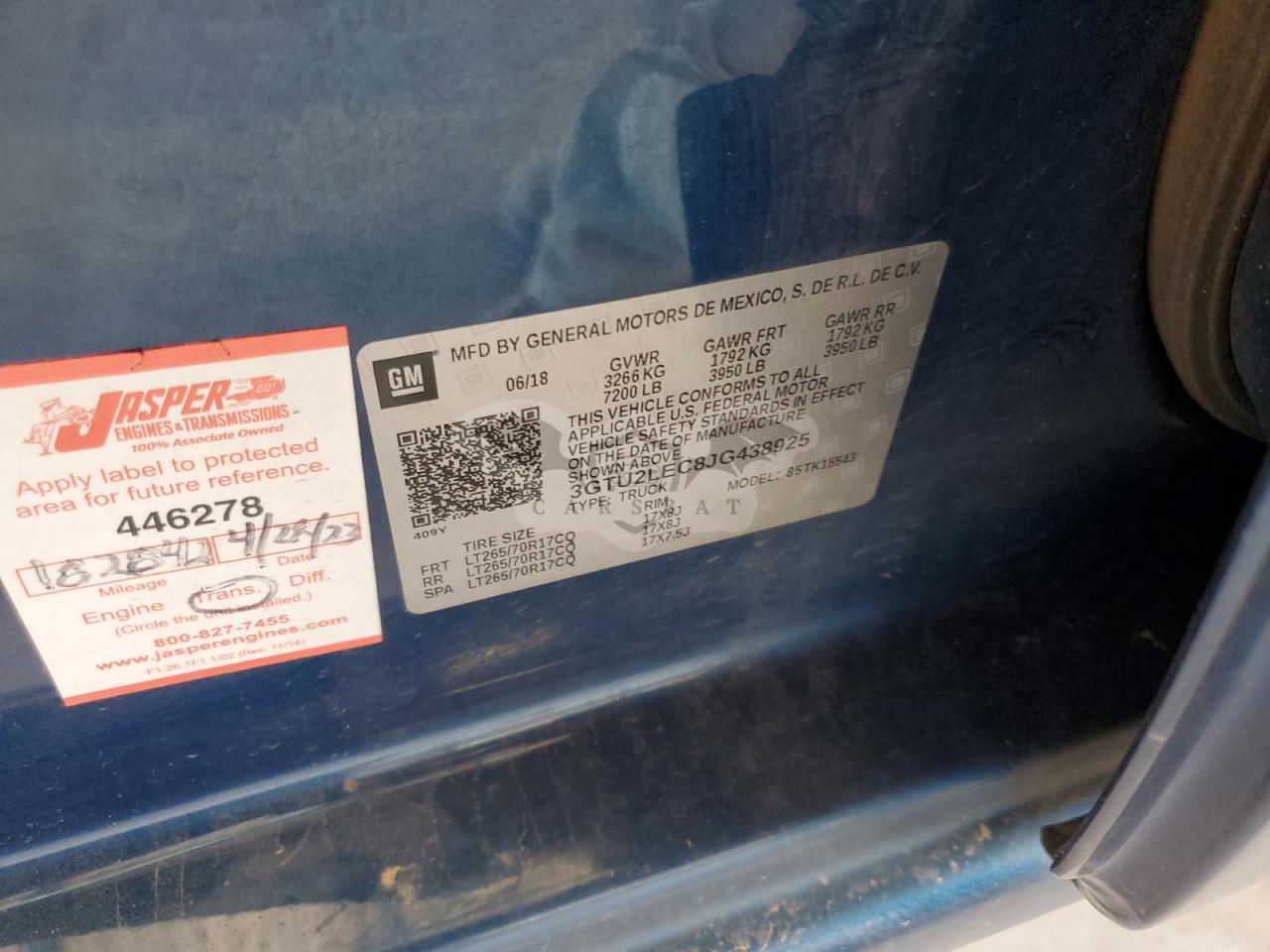 • VIN: 3GTU2LEC8JG438925