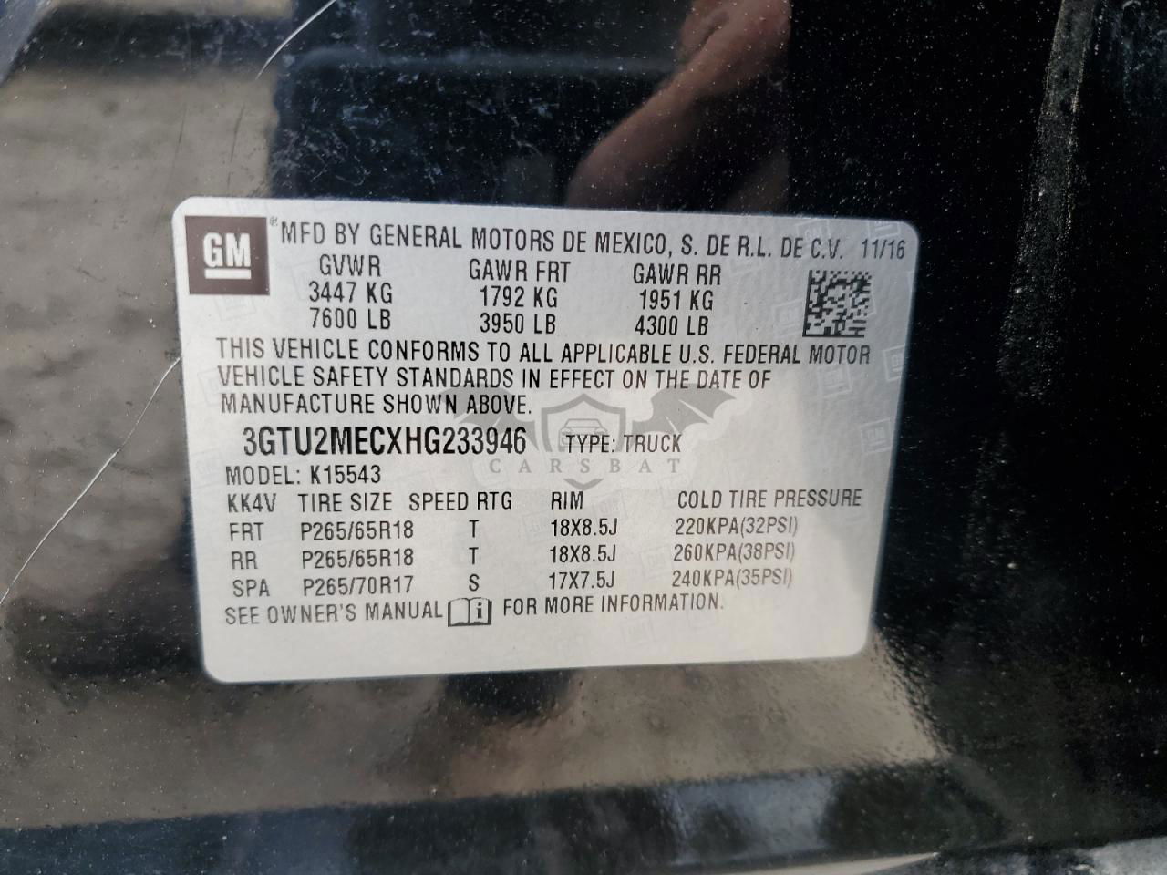 • VIN: 3GTU2MECXHG233946