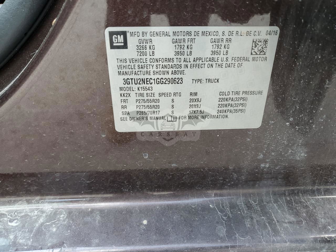 • VIN: 3GTU2NEC1GG290623