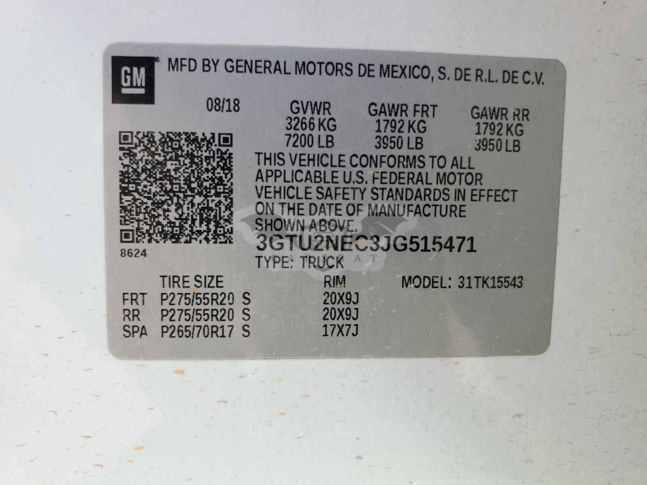 • VIN: 3GTU2NEC3JG515471