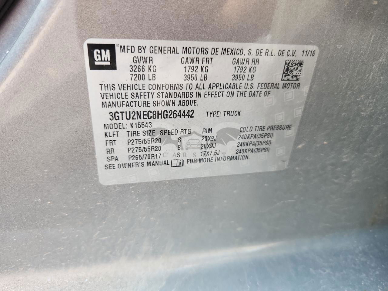 • VIN: 3GTU2NEC8HG264442