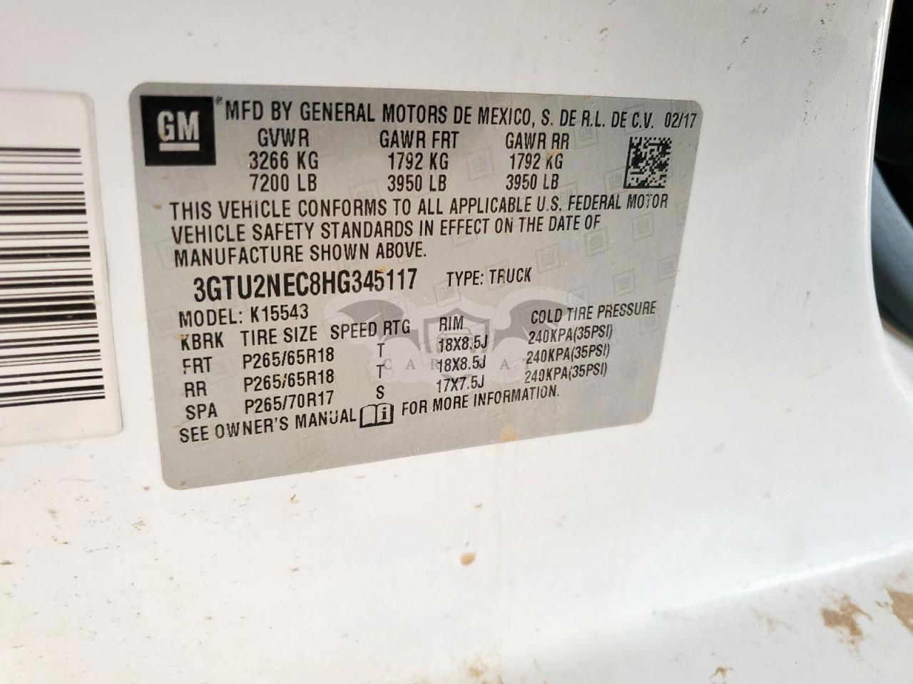 • VIN: 3GTU2NEC8HG345117