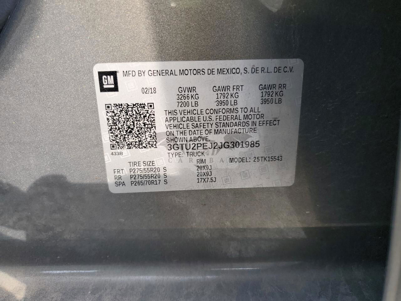 • VIN: 3GTU2PEJ2JG301985