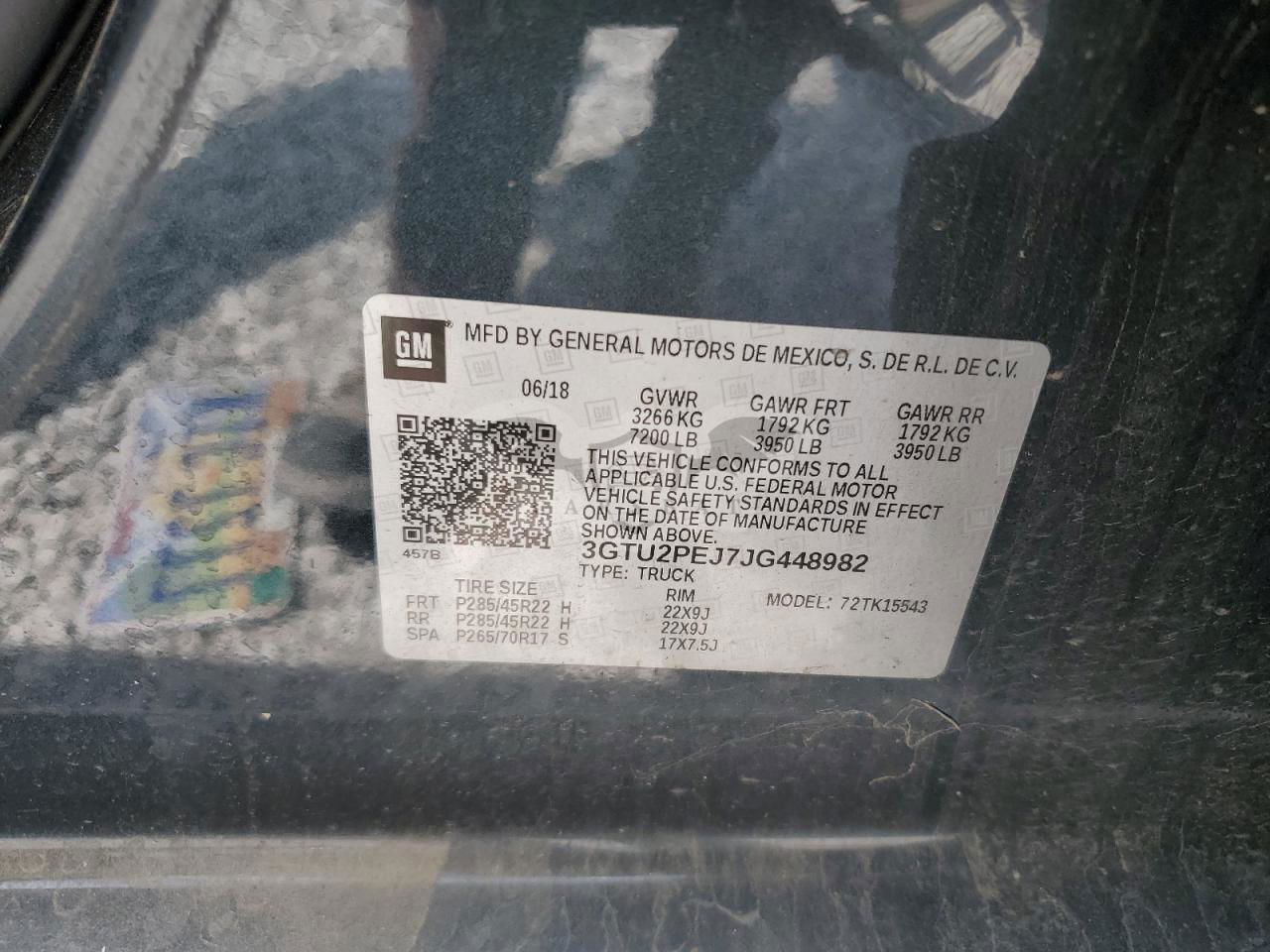 • VIN: 3GTU2PEJ7JG448982