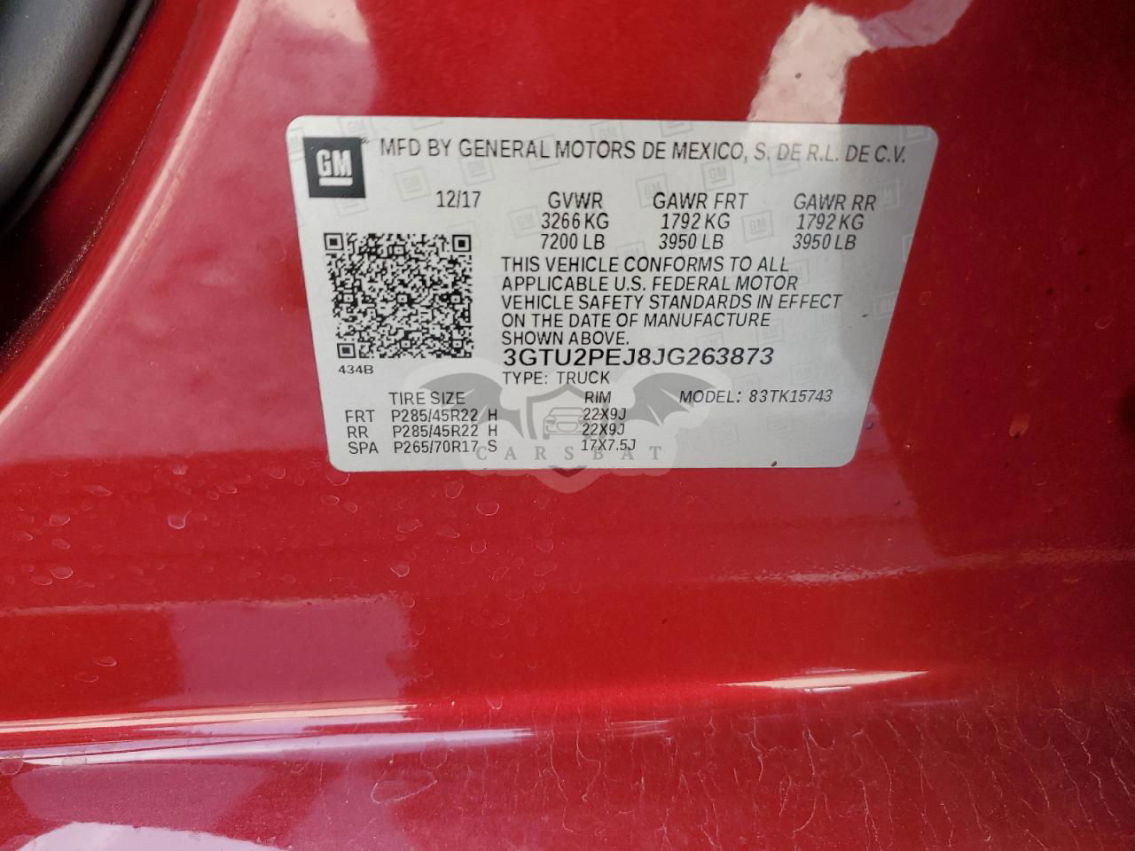 • VIN: 3GTU2PEJ8JG263873
