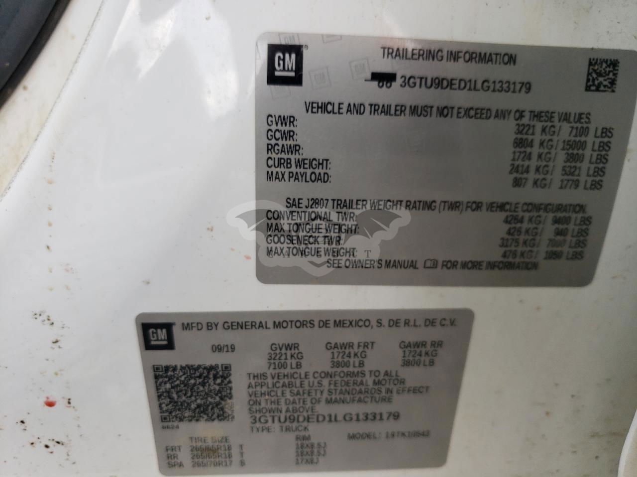 • VIN: 3GTU9DED1LG133179