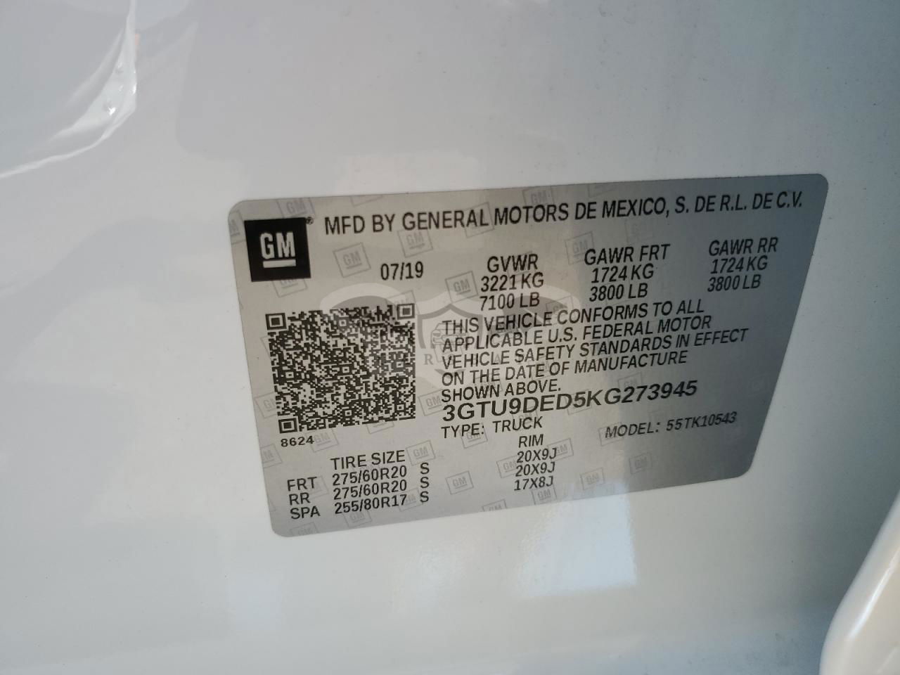 • VIN: 3GTU9DED5KG273945