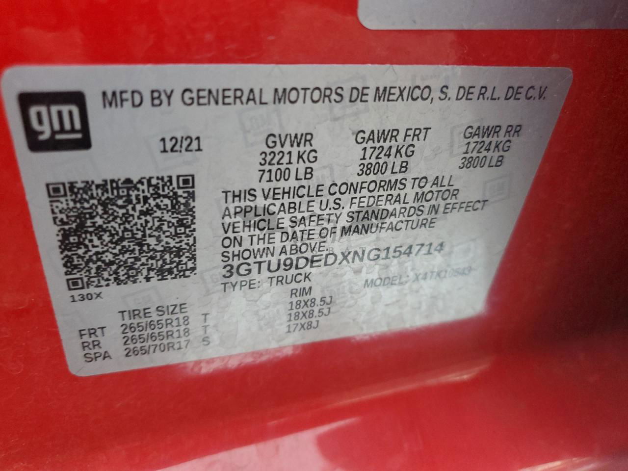 • VIN: 3GTU9DEDXNG154714