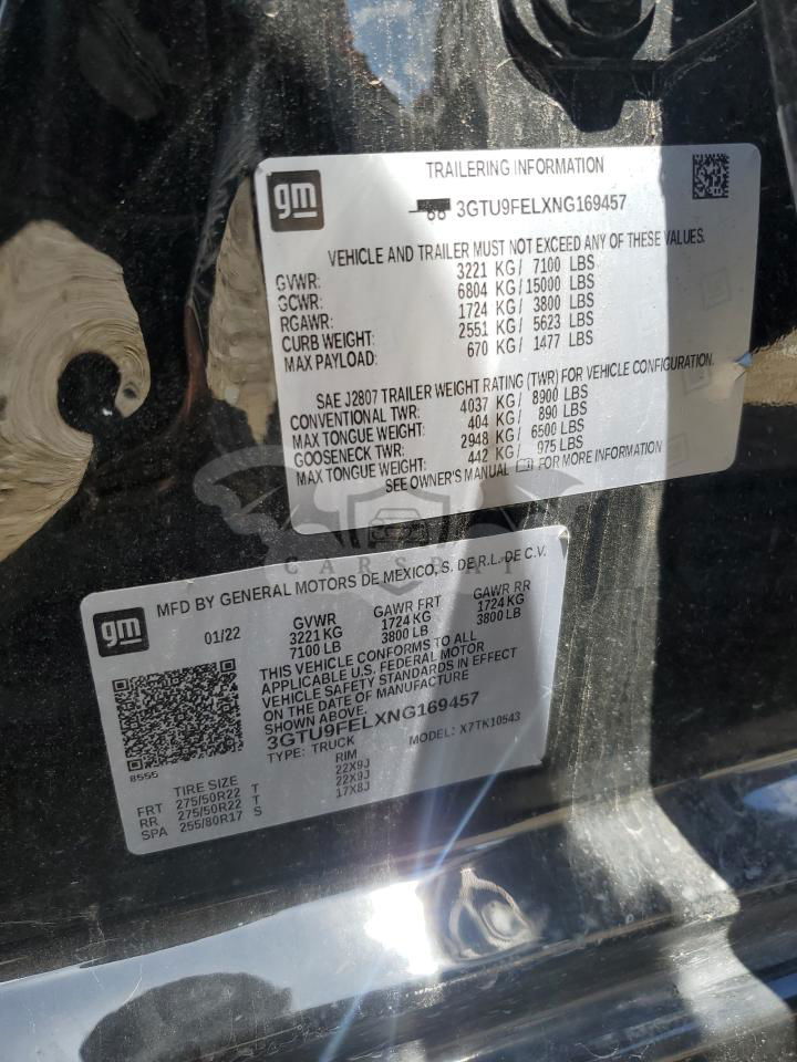 • VIN: 3GTU9FELXNG169457