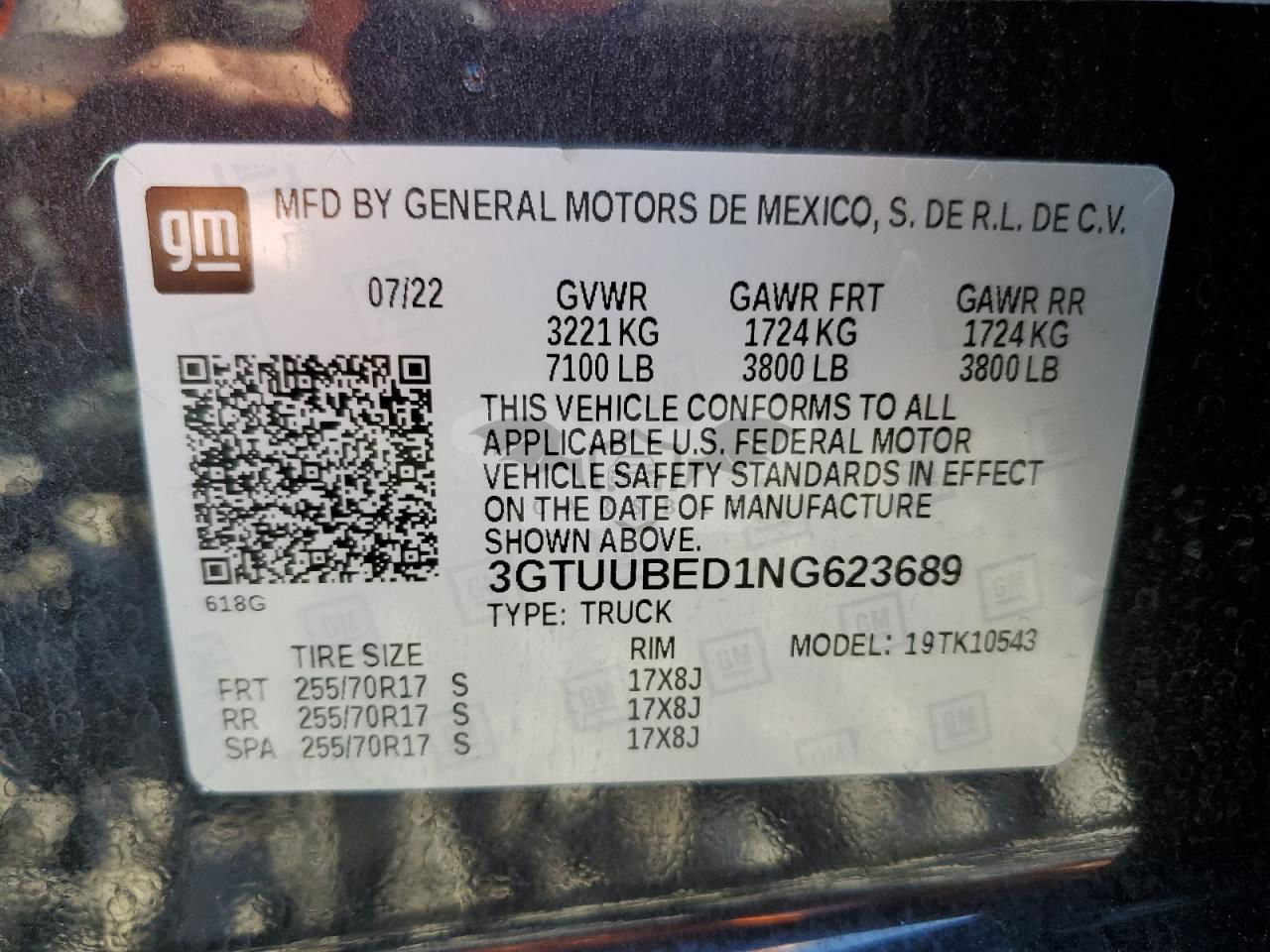 • VIN: 3GTUUBED1NG623689