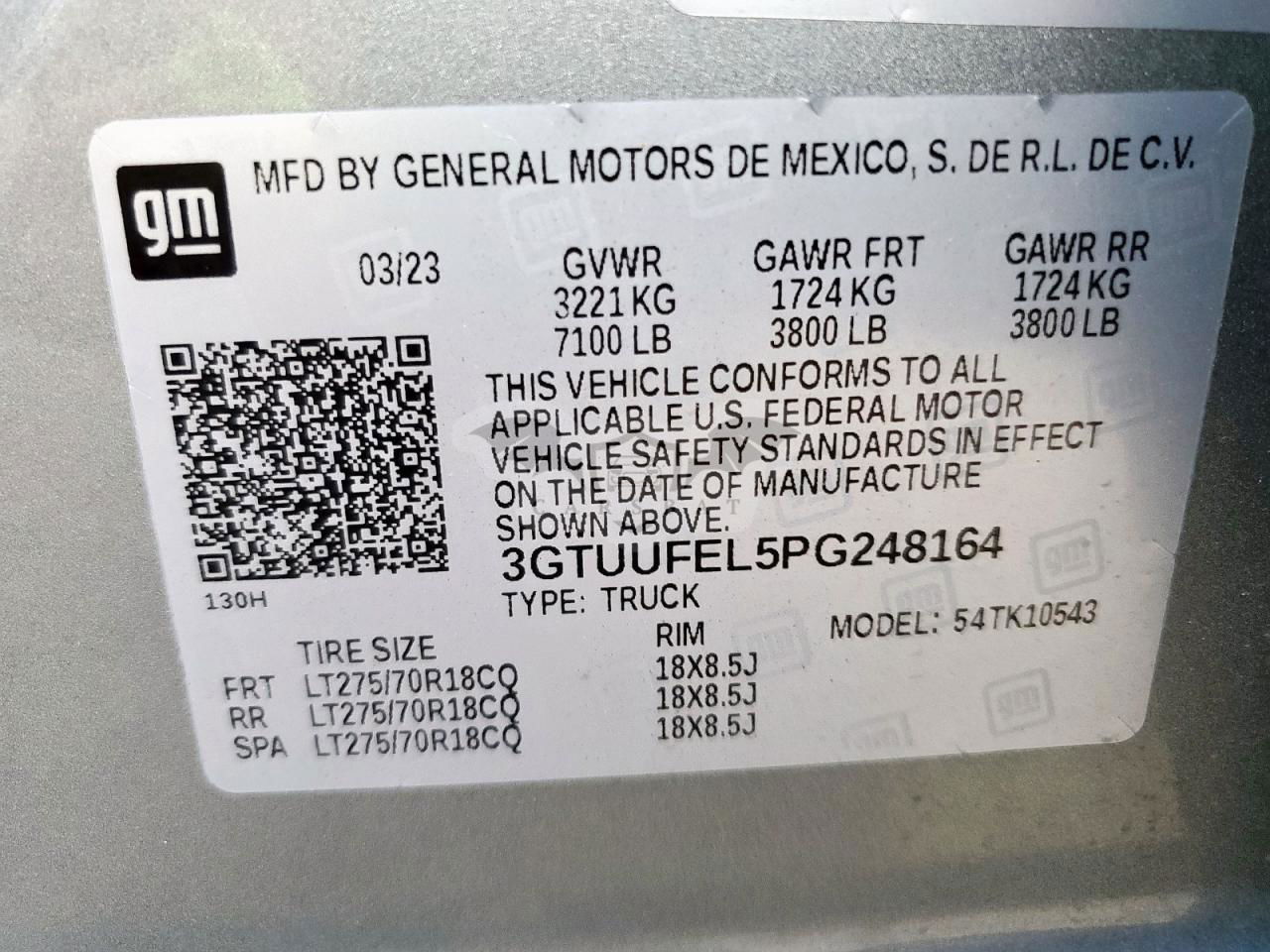 • VIN: 3GTUUFEL5PG248164