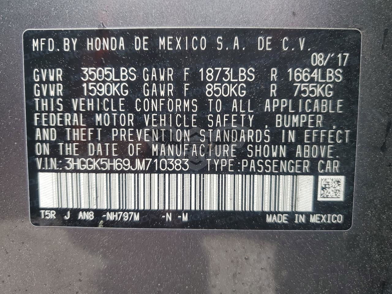 • VIN: 3HGGK5H69JM710383