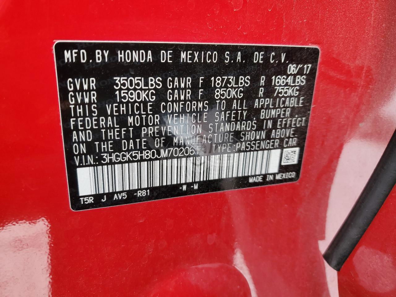 • VIN: 3HGGK5H80JM702061
