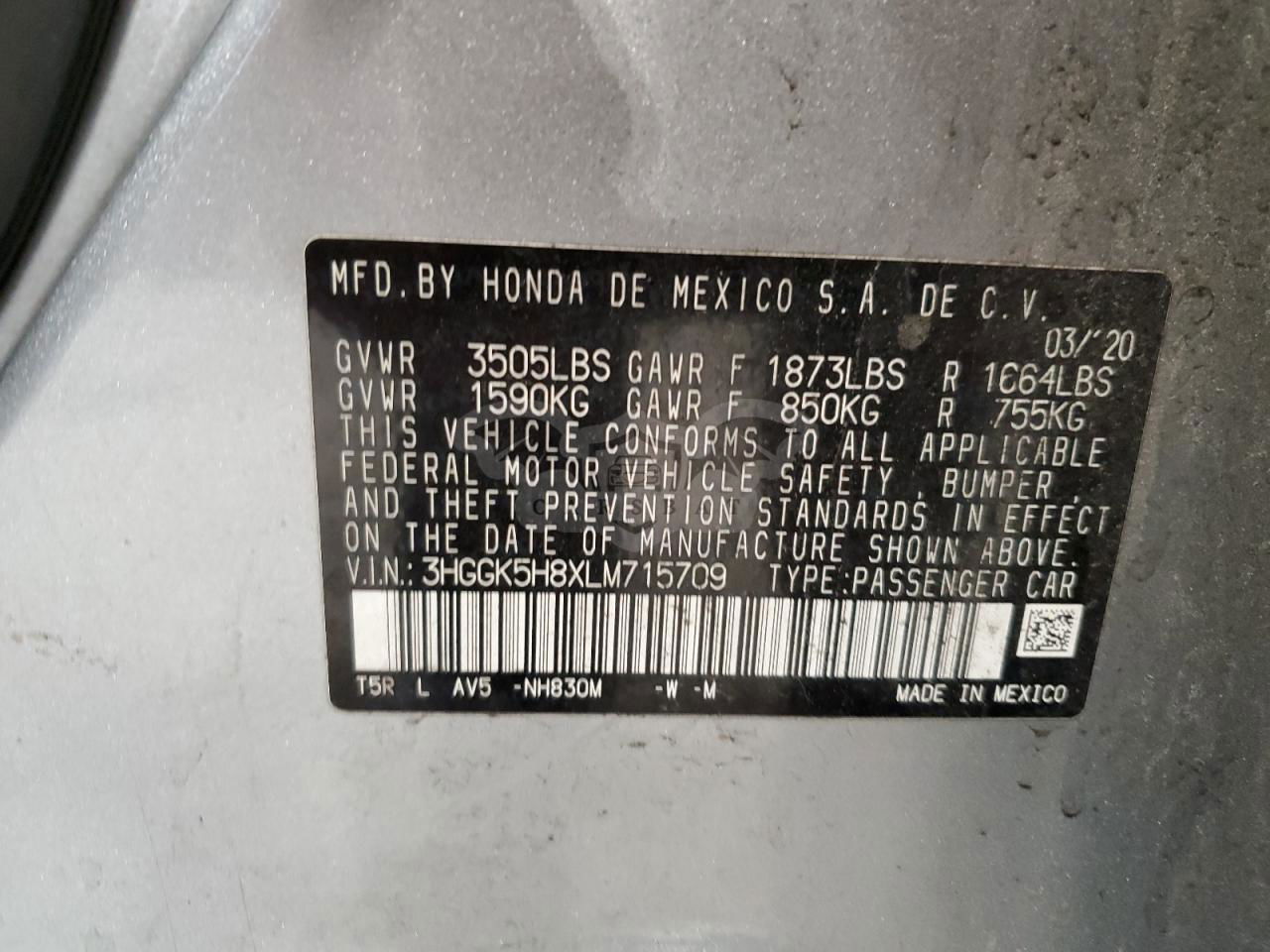 • VIN: 3HGGK5H8XLM715709