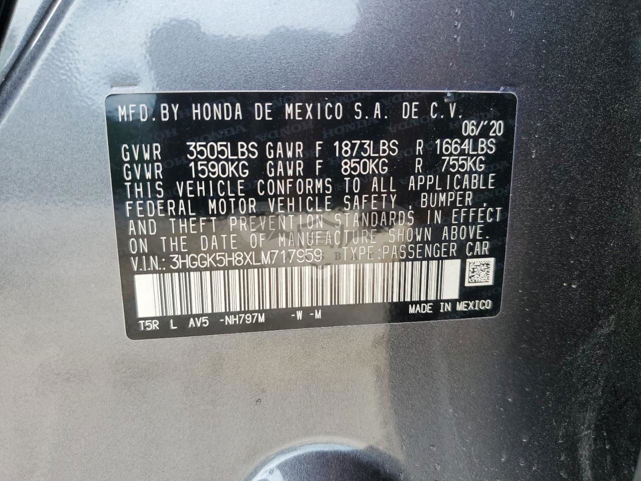 • VIN: 3HGGK5H8XLM717959